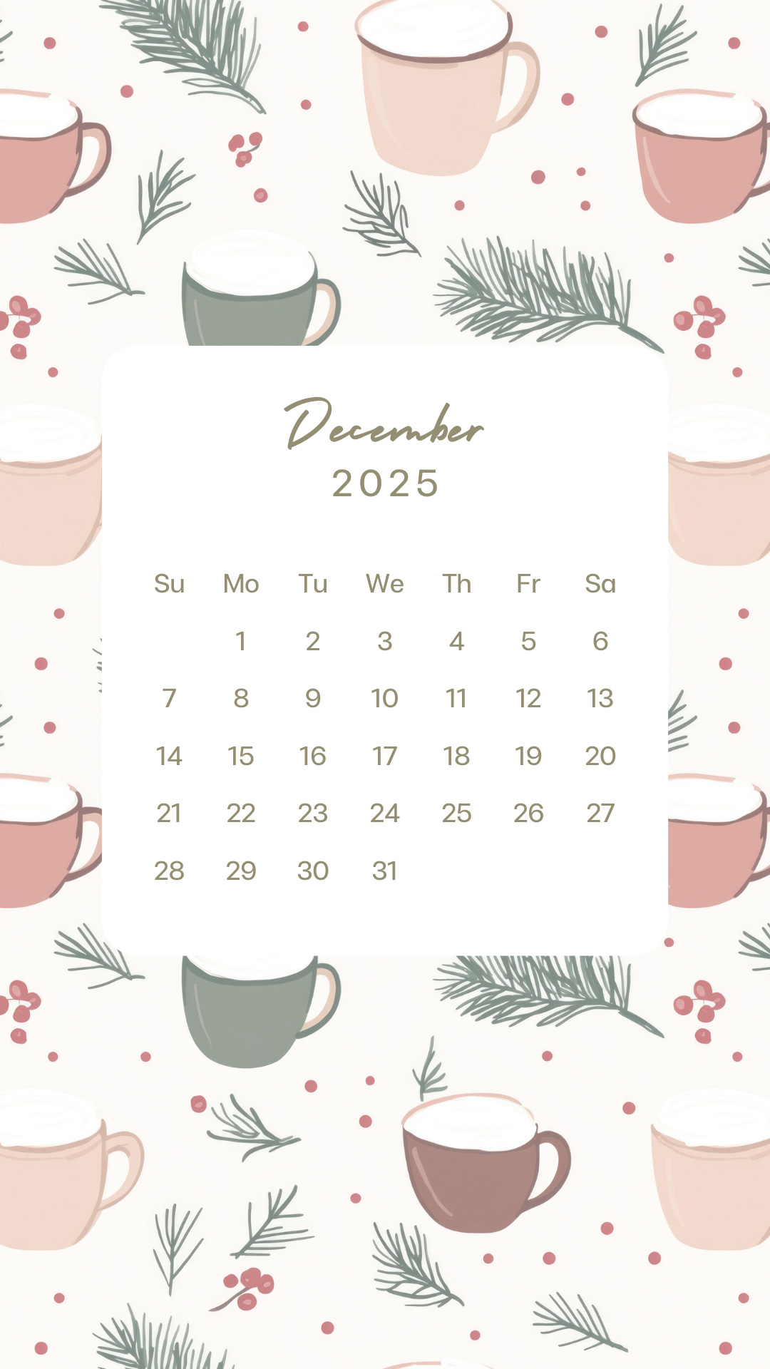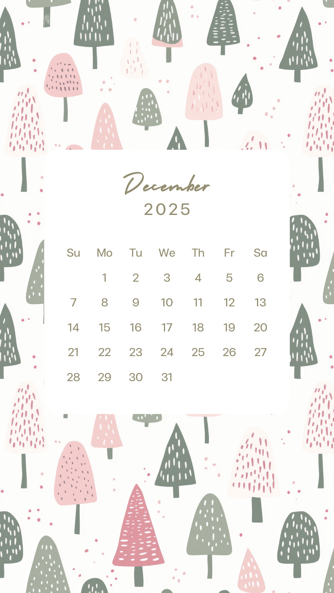 So for now, I’ve got 3 downloadable December calendars that you can print or use as a computer background and 3 downloadable phone calendar wallpapers.
